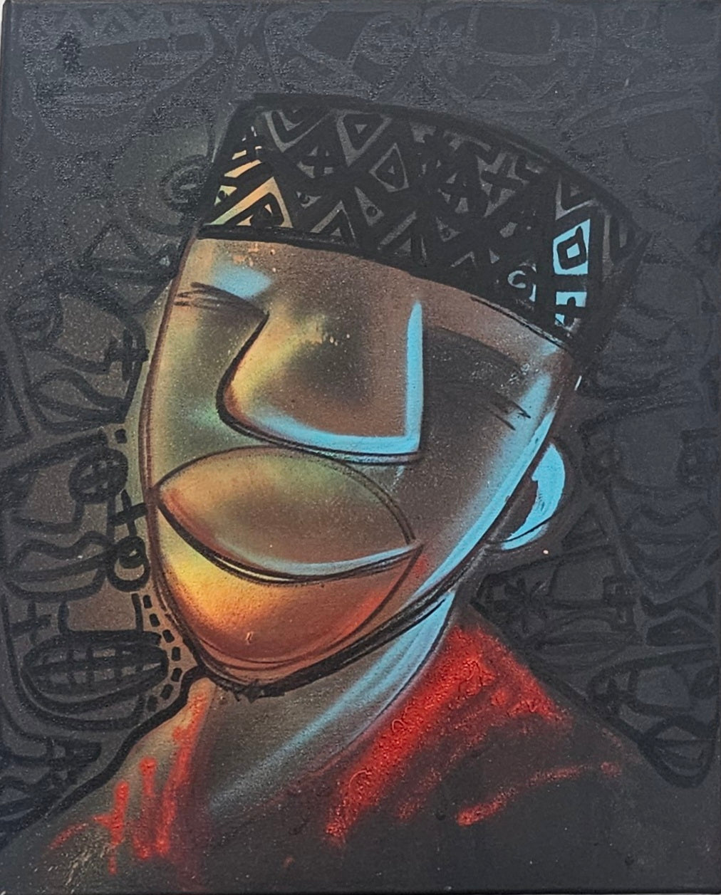 Acrylic, aerosol and pastels on canvas