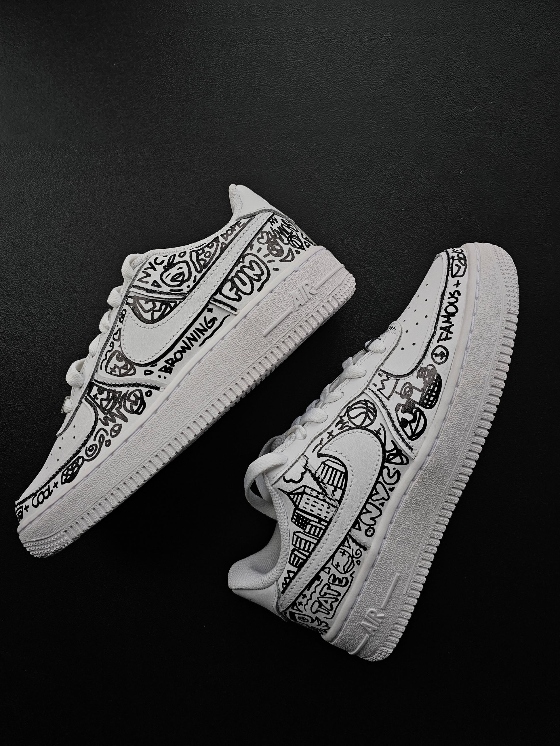 Handmade custom doodle art by OliGa on the sneaker of your choice. From Af1 to any other cool kicks. Personalized wearable are a way to stand out with your outfit, more than an actual sneaker, you are wearing Art. From one color line to full color sneaker art. Each custom is unique and bring value and more style to your shoes. Packages available with sneaker included with custom and sneaker excluded.