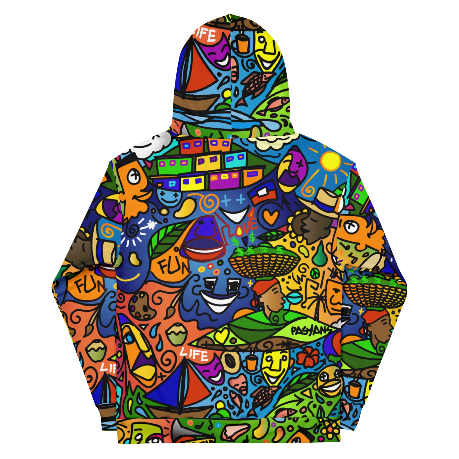 This comfy unisex hoodie has a soft outside with a vibrant print and an even softer brushed fleece inside. The hoodie has a relaxed fit, and it's perfect for wrapping yourself into on a chilly evening.